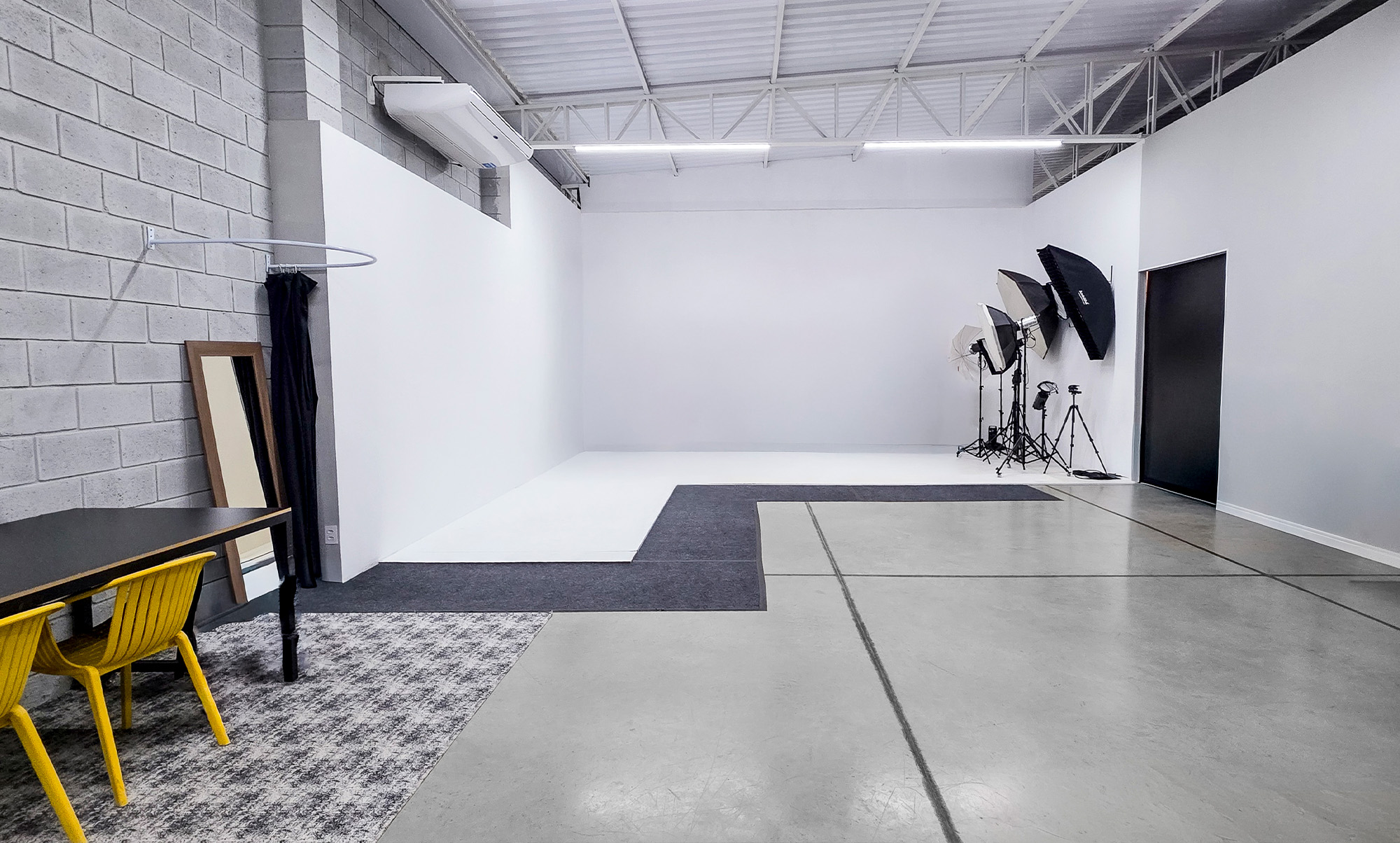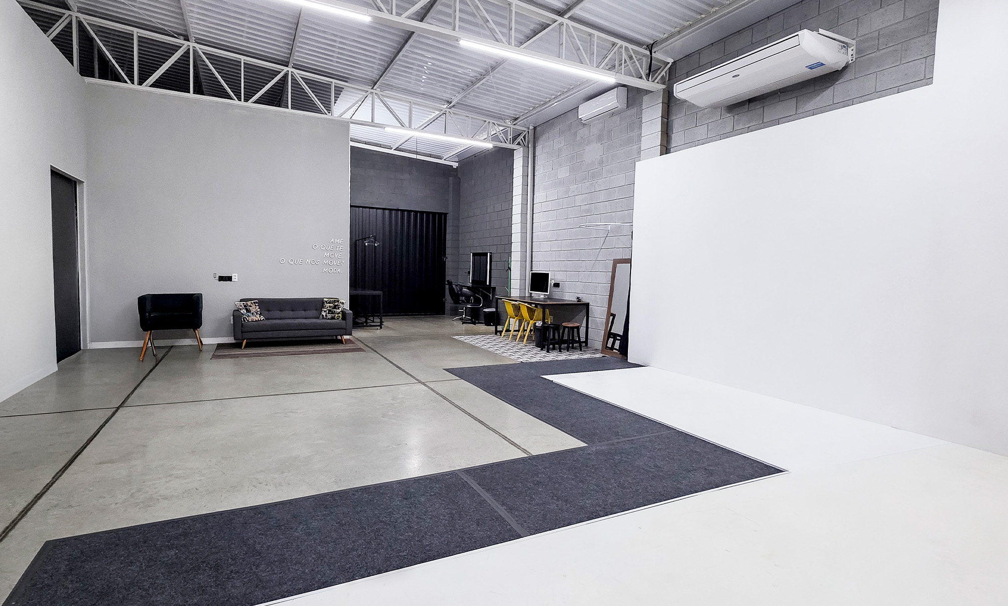 Nosso espaço conta com dois estúdios e uma estrutura completa com tudo que sua marca precisa para um dia de produção incrível.
